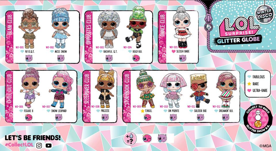 Por primera vez puedes darle agua a la muñeca para mostrar un hermoso y reluciente peinado. Agítala y dale la vuelta para ver un increíble efecto de bola de nieve. Colecciona las 12 nuevas muñecas listas para el Winter Disco. También incluyen otra sorpresa de agua, como arrojar agua y cambiar de color.